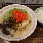 本場博多 長浜ラーメン まるむら – トッピング後の長浜ラーメン 650円