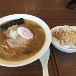煮干しの出汁が濃過ぎず薄過ぎずバランスが良くて美味い。チャーシューは脂身が少ないけど柔らかくて美味い。1番気に入ったのは玉ねぎがすりおろしに近いみじん切りになっていて口の中がさっぱ… …