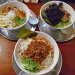 若い友人たちと3人で,平日の18時40分頃におじゃましました. 満席で,店の外で10分くらい待ってから,テーブル席に通されました. 他の客は高校生?大学生で,ほとんどが男性でした. 自分は「肉みそ(特盛)710円」を,2人の連れはそれぞれ「海苔海苔中華(大盛り)780円」と「汁… … 評価が高めで、気になっていました新潟には沢山ラーメン屋さんがあるので、選ぶのに大変ですね関屋の有名店近くにひっそりとありますマンション1Fにポツンとあります駐車… … 2019年6月以前から気になっていたお店。信濃町のウオロクの裏の方にあります。現在、建物は修繕工事中。目立たないので、通り過ぎてしまいそう。狭小な店内は… …