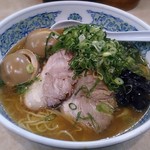 JR森ノ宮駅、中央大通り沿いにあるラーメン屋。カウンター席に、テーブル席もありましたね。壁一面に漫画が置いてます、こりゃすごい!しかも漫画のチョイスがなかなかアキラオウ… … 「醤油らーめん(600円)」 城東区にある「究極らーめん」に訪問していました♪最寄り駅はJR森ノ宮駅になります。メニューは…醤油らーめん・600円 味噌らーめん… … ラスタカラーの看板が目印のらーめん店です。店内は、L字のカウンター席と、テーブルが2卓。壁掛けのテレビがあります。お水はセルフです。お若い男性お一人で営業されてまし… …