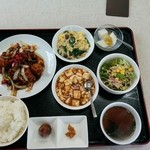 2018.5.411時30分息子と二人、ある事で待ち時間があったため早めの昼食を頂こうと散策しているとラーメンのぼりが見えたので入店。昼前なので先客無しで気まずい雰囲気… … 土曜日の昼に利用。日替わり定食を頼んだ。今日はごはん(お替り自由)、鶏肉の甘酢あんかけ、麻婆豆腐、しめじと小松菜の卵とじ、サラダ(胡麻ドレッシング)、ラーメンスープ、杏仁豆腐、ラ… …