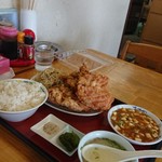 香川県観音寺市。R11沿いにある中華料理屋さん。店の前に6台分ぐらい駐車場あります。まず、入口は重厚な雰囲気。店内は入ってすぐ手前にカウンター3席。4人テー… … 水曜休み、11~14時あいていて、中休みはさんで夕方から営業のようです。駐車場は5台くらいかな。店内キャパは15人くらいかな。昼限定の定食が安くて量が多いと聞きまし… … 今日は満州さんで初の定食メニューに挑戦してみたいと思います。心は、いつまでも若く挑戦者でいたい炭水化物の唄です。コンヌツワ。m(__)m 前々から薄々、気づいていました… …