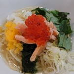 拉麺 イチバノナカ – サーモンとイクラと生のりと山葵の和えそば\950