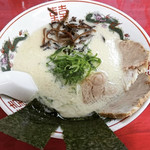 ラーメン一龍。健軍町電停から徒歩3分ほどの住宅街の中。二度目の来訪です。12時ちょっと前に入店。先客はゼロ。カウンターに座りメニューを拝見です。前回はこってり系の一龍ラーメンを食していますが、今回は野菜盛ラーメン (690円)をオーダー。スープはスタンダードな味わいのよう… … プラチナウィークの初日のお昼に初訪店内、お客さん数名カウンター席メインですが、テーブル席もあり、子供椅子もありました。お薦めの「一龍ラーメン」こってり、「ラ… … かなり濃厚なとんこつですね。4種類(細麺・中太麺・ちぢれ麺・たまご麺)から選べるようです。今回オーダーした一龍ラーメンのデフォという細麺をバリカタで選択。肉肉しいチャーシューは1枚… …